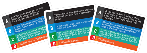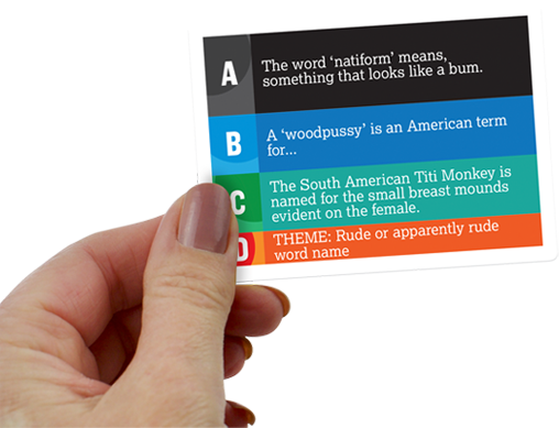 In this no-holds-barred 'adult' version of the bluffing game you'll find facts to make you laugh out loud... and others with the full-on 'ouch' factor!